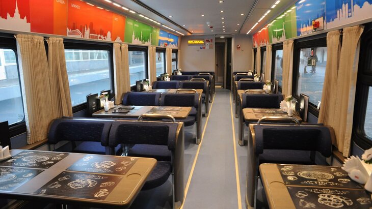 Например, в вагонах-ресторанах и вагонах-бистро поездов дальнего следования путешественники смогут насладиться блинами с различными начинками, включая джемы и сгущенное молоко. Кроме того, в вагонах повышенной комфортности отдельно можно будет заказать блины из гречневой муки с курицей или апельсиновым соусом.