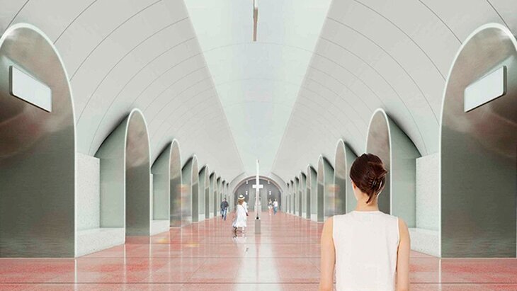 По словам главы столичного Стройкомплекса, следующим этапом работ станет установка главных архитектурных элементов станции: арочных порталов из нержавеющей стали, подсвеченных светодиодными светильниками. Всего таких порталов будет 16. Они послужат проходами из центрального зала станции к платформам: по 8 порталов с каждой стороны.