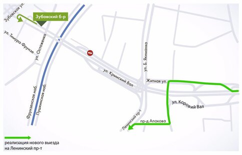 Новый поворот позволит организовать дополнительный удобный выезд с внутренней стороны Садового кольца через улицы Житная, Мытная и проезд Апакова на Ленинский проспект в сторону области. Кроме того, он позволит сократить маршрут от Садового кольца на Ленинский проспект до 5-10 минут в часы пик.