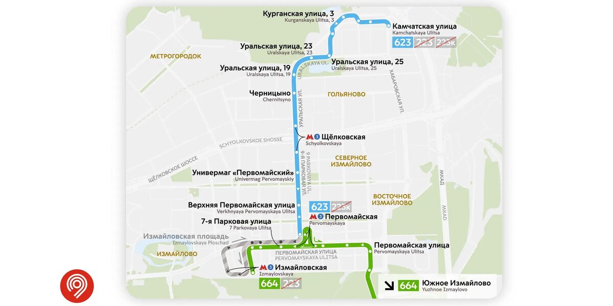 Кроме того, под номером 623 объединят маршруты № 223 и 223к. Транспорт будет курсировать от Камчатской улицы до станции метро "Первомайская", кроме того, автобусы на этом направлении будут ходить чаще.
