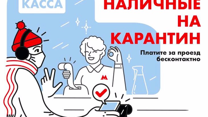 Один из стикеров призывает пассажиров временно отказаться от наличных денег. "Отправьте наличные на карантин", – написано на нем. Наклейки с призывами использовать бесконтактную оплату проезда расположены на кассовых окнах в вестибюлях станций.