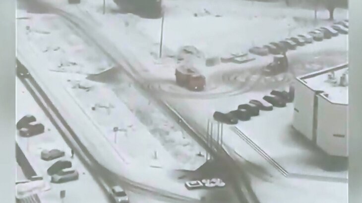 Водитель грузовика исполнил высокохудожественный дрифт на заснеженнной парковке