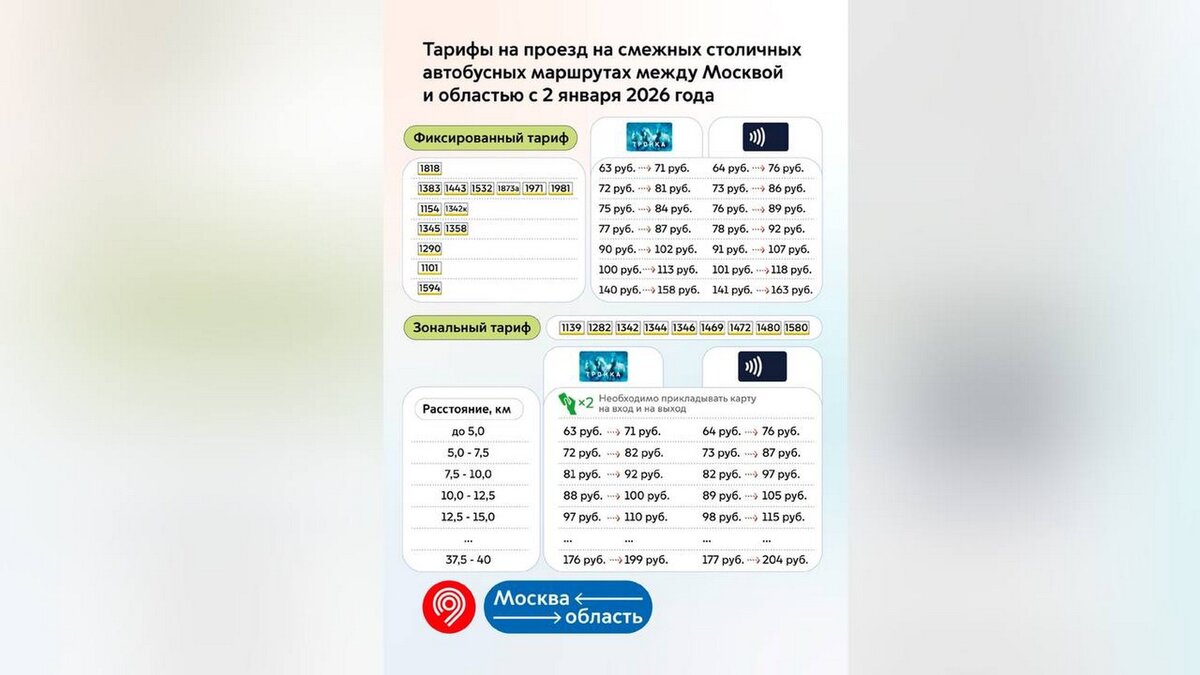 Помимо этого, с 2026 года Москва проиндексирует тарифы на проезд в смежных автобусных маршрутах между столицей и областью. Изменения коснутся маршрутов с фиксированной стоимостью и зональной тарификацией. Средний размер индексации окажется на уровнях 14,3 и 14,9% соответственно.