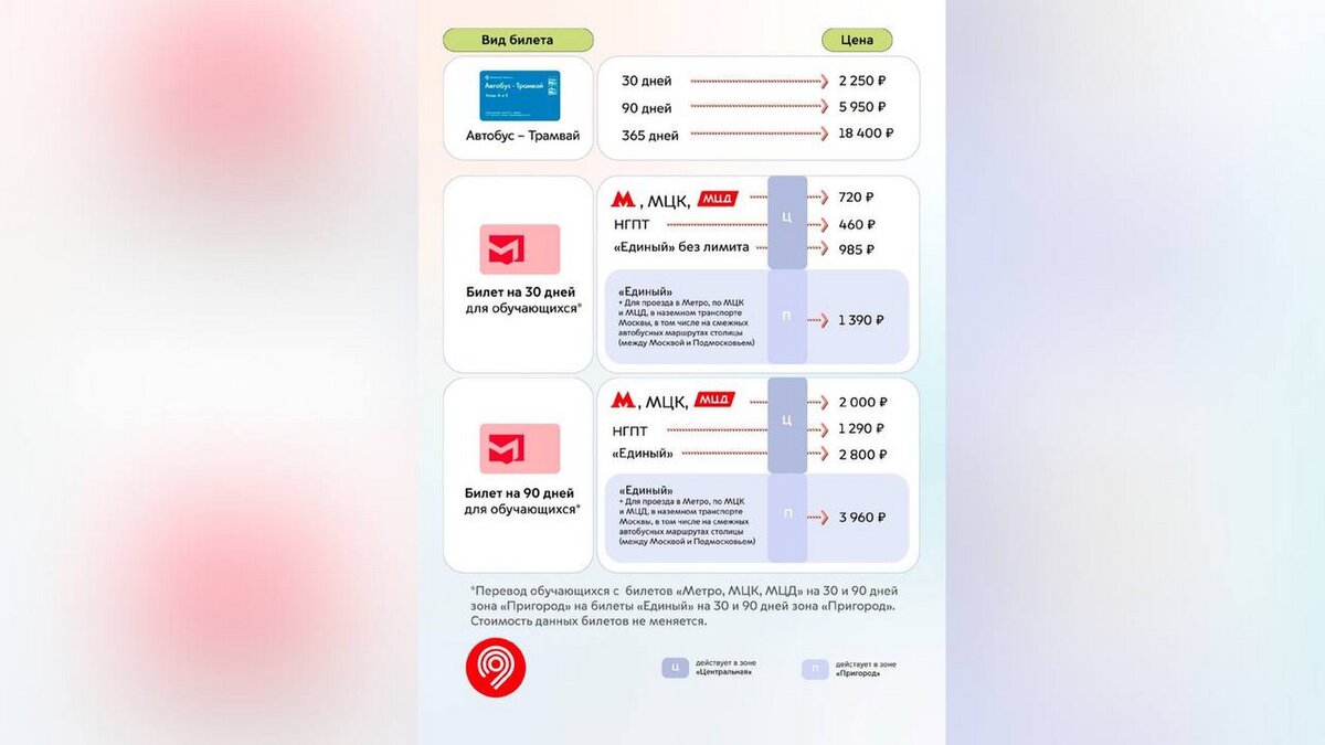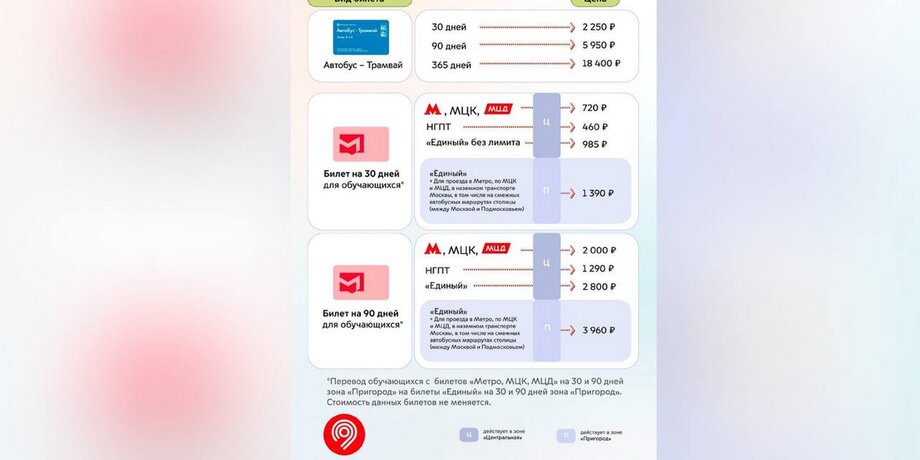 Кроме того, с 2 января не изменится и стоимость билетов "Единый" для учащихся на 30, 90 и 365 дней для зоны "Пригород". Они смогут оплачивать проезд на смежных столичных автобусных маршрутах. Более того, проездными можно будет пользоваться и в поездах.
