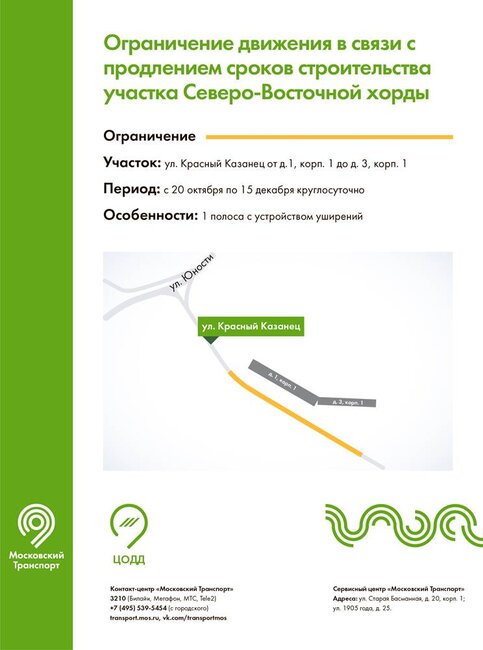 Движение транспорта ограничили на участке столичной улицы Красный Казанец в связи с продлением сроков строительства Северо-Восточной хорды.