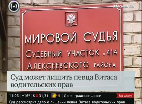 Судья мирового судебного участка Останкинского района Москвы отказалась вернуть в полицию дело в отношении Витаса. Его могут лишить водительских прав после скандальной аварии. Сам певец ни на одно заседание суда не явился. Его защищают сразу три адвоката.