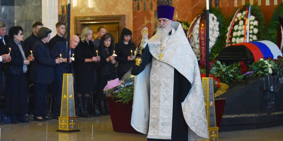 После церемонии прошло отпевание Леонова. Траурные венки в память о космонавте прислали семья Кобзона, Европейское космическое агентство, партия "Единая Россия", Академия российского телевидения, депутаты Мосгордумы, авиационные спасатели, посол КНР в России и Московский музей Сергея Есенина.