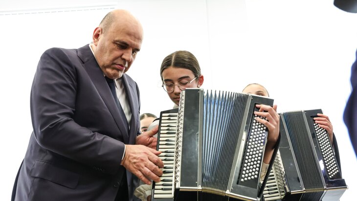 Премьер-министр России Михаил Мишустин в ходе своего визита в детскую музыкальную школу Беслана сыграл песню "Священная война" на осетинской гармонике.