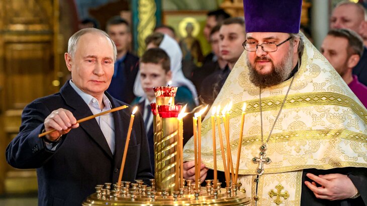 ПолитикаПутин встречает Рождество в храме на Поклонной горе в Москве
