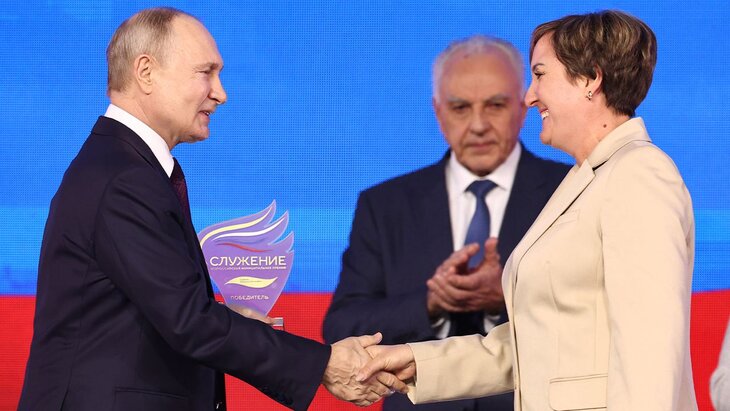 Владимир Путин вручил главе сельского поселения администрации Мещегаровского сельсовета в Башкортостане Ильнаре Сафиной премию "Служение" в специальной номинации "Судьба человека – гордость Отечества". Церемония прошла на площадке "Live Арены", передает РИА Новости.