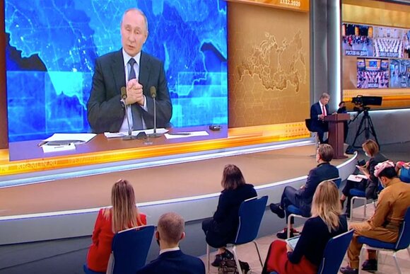 В этом году из-за пандемии коронавируса пресс-конференция проходит в дистанционном формате – глава государства отвечает на вопросы из резиденции в Ново-Огареве.