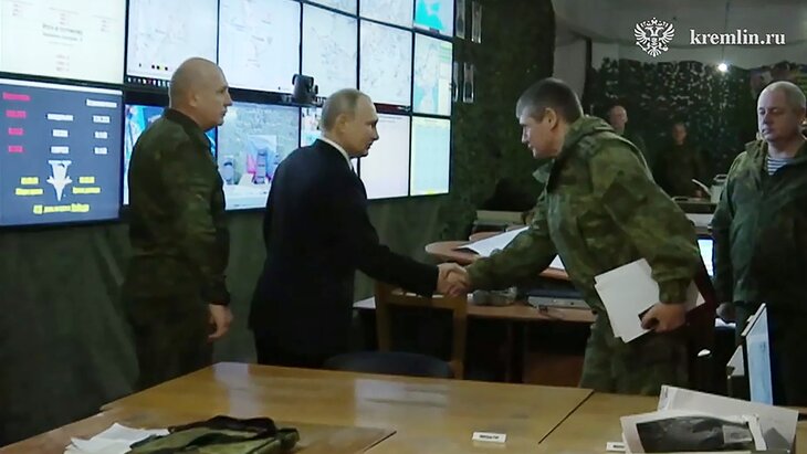 Ранее стало известно, что Путин посетил штаб группировки войск "Днепр" на херсонском направлении. В ходе визита он заслушал доклады командующего ВДВ генерал-полковника Михаила Теплинского, командующего группировкой войск "Днепр" генерал-полковника Олега Макаревича и других высших офицеров.