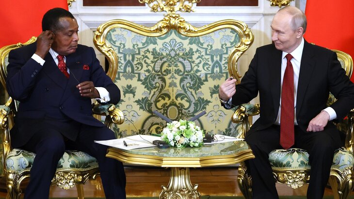 Владимир Путин разрядил обстановку после протокольной заминки, которая возникла во время встречи с президентом Конго Дени Сассу-Нгессо в Кремле.