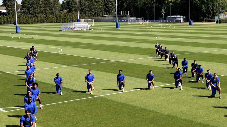 Футболисты лондонского "Челси" преклонили колено в память о погибшем при задержании полицией США афроамериканце Джордже Флойде. Соответствующее фото опубликовали в официальном микроблоге клуба в Twitter.