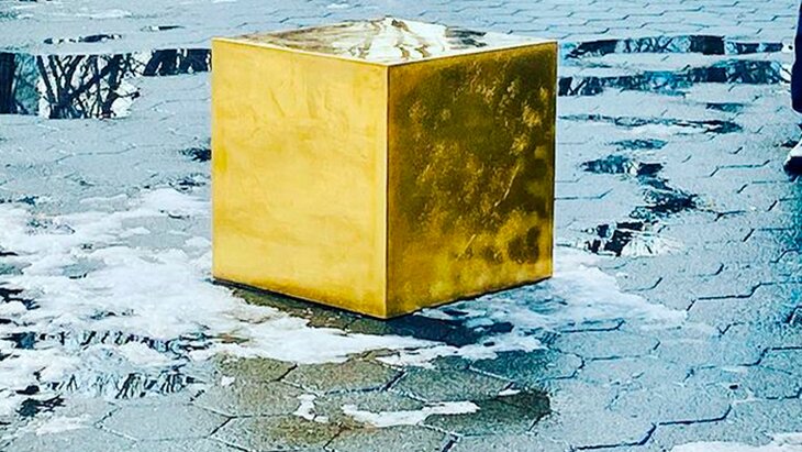 Скульптуру в виде золотого куба установили в Центральном парке Нью-Йорка. По информации издания Artnet News, автором работы стал немецкий художник Никлас Кастелло.