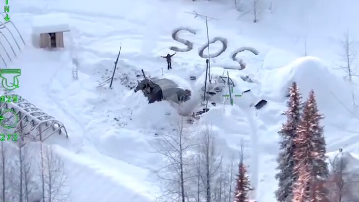 Дойти до города американец не мог из-за сильного снегопада, а спутниковый телефон разрядился, поэтому сообщить о своем положении он также не мог. Отшельник построил временное убежище и написал на снегу крупными буквами SOS, посыпав их пеплом.