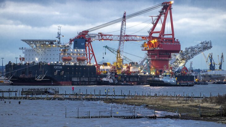 Накануне судно-трубоукладчик "Фортуна" вышло из немецкого порта Висмар за день до начала укладки участка газопровода в Дании.