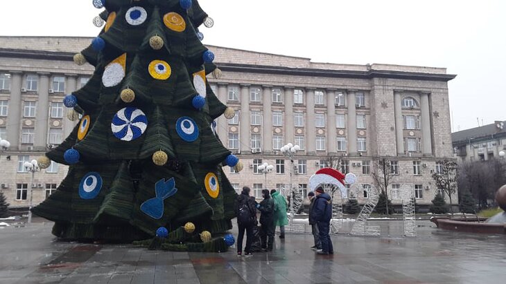 В Черкассах (Украина) на новогодней елке появились необычные украшения. Об этом сообщает "Газета.ру".