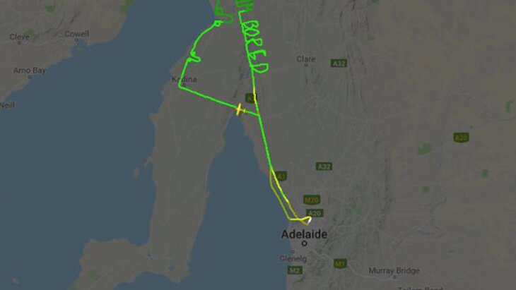 Как уточняется, инцидент произошел 19 февраля на юге Австралии. Трекинг рейса показал, что в воздухе пилот вырисовывал надпись "I'm bored" ("Мне скучно"), а также две фигуры, напоминающие мужской половой орган.