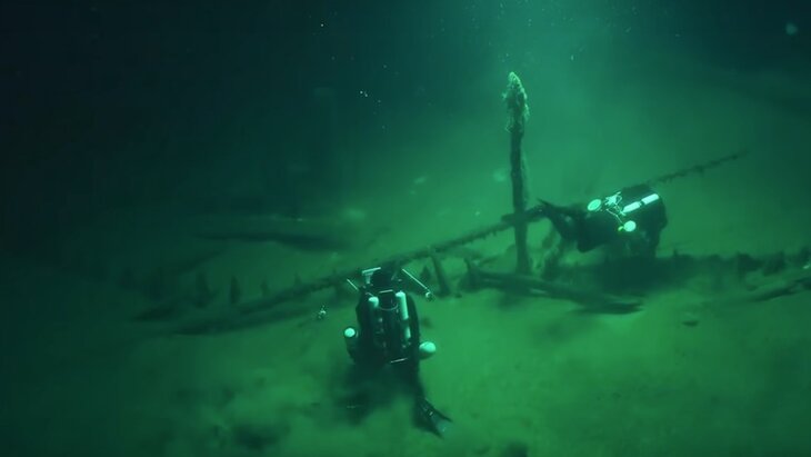 По словам ученых, корабль лежит на большой глубине на правом боку, причем его мачта, рули и скамьи для гребцов – в прекрасном состоянии.