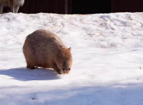 Капибары находятся на старой территории зоосада. Им важны водоемы, поэтому в теплое время года эти животные плавают в уличном рве. Сначала на улицу вышла Симка, которая родилась осенью 2025-го. За ней последовала и ее сестра Верта. Живущие рядом муравьеды Диего и Белла также выходят погулять.