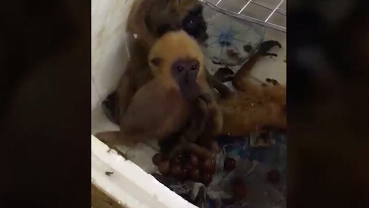 Отмечается, что найденным детенышам гиббона – от двух до четырех месяцев. Животные сильно ослабли, один детеныш погиб.