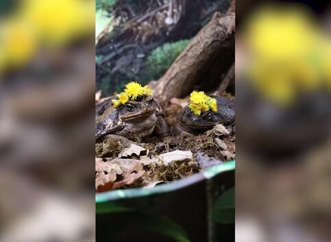 Для свадебной церемонии жаб сотрудники зоопарка подобрали приближенную к природной цветовую гамму, а весь декор был изготовлен вручную из экоматериалов.
