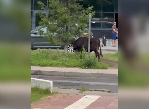 ОбществоБесхозный бык вышел в центр подмосковных Люберец