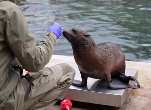 ГородДетеныша морского котика Снарка из Московского зоопарка выпустили в уличный бассейн