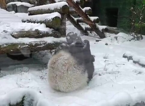 ГородВ Московском зоопарке показали, как панда Катюша радуется выпавшему снегу
