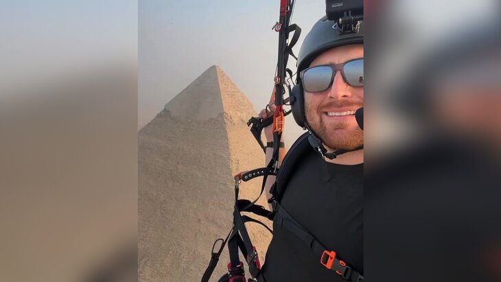 Собака забралась на вершину древней пирамиды Хеопса в Египте. Видео с полетом парапланериста, который запечатлел животное, ранее появилось в социальных сетях.