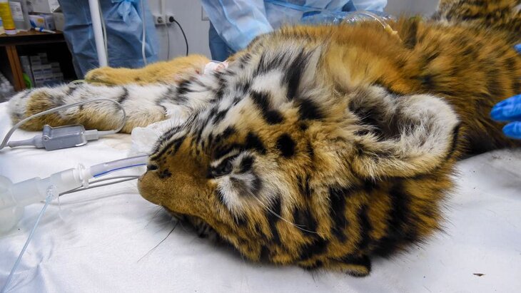 В центре реабилитации специалисты осмотрели детеныша. Эксперты установили, что тигренок – "девочка" возрастом примерно 4–6 месяцев. Зверь сильно истощен, однако ран и видимых повреждений не было обнаружено. Специалисты прокапали тигренка, ввели поддерживающие препараты и назначали курс восстановления.