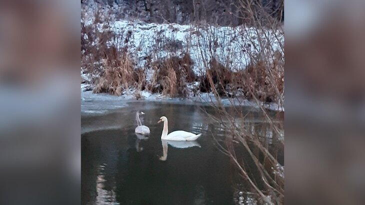 Кроме того, он обратил внимание на то, что одна из птиц – взрослая, а вторая – птенец этого года. В настоящий момент неизвестно, почему они остались и не улетели, однако лебеди-шипуны зачастую остаются на открытых водоемах, особенно если еды достаточно.