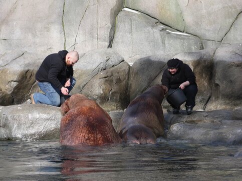 В Гамбурге за животными, первое время будут ухаживать московские киперы. Моржи остаются в Германии насовсем, а Московский зоопарк будет все время на связи с ними.