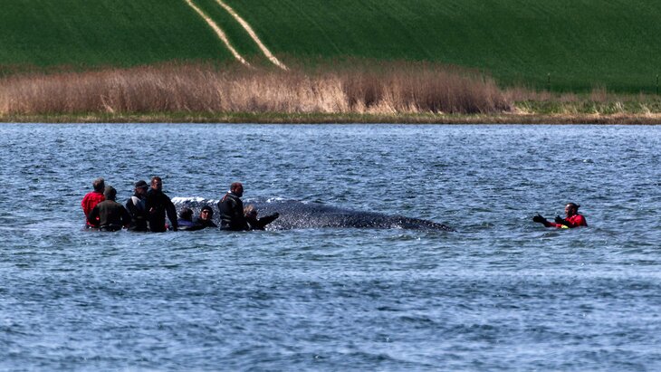 Кита весом около 15 тонн и размером 12–15 метров заметили на мелководье в Балтийском море на севере ФРГ еще в конце марта. Несколько попыток спасти его закончились неудачно, так как грунт оказался слишком твердым для землесосной установки.