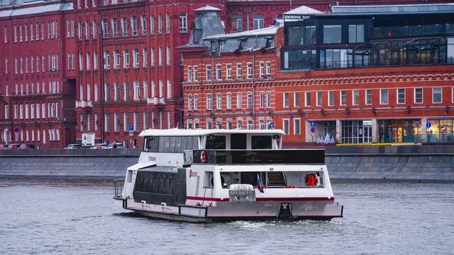 Первое гибридное прогулочное судно-электроход "Стрельна" запустили в Москве