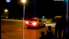 На записи, снятой на камеру мобильного телефона, хорошо видно, как ночью со стоп-линии стартуют два стритрейсера. Машины мгновенно набирают скорость и буквально вылетают на перекресток, где в них врезается обычный автомобилист.