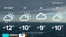 Днем в Москве ожидается +13 градусов, а вечером температура воздуха составит +9 градусов. Подробнее – в эфире телеканала Москва 24.