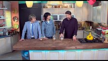 Ведущий программы "Без проблем" Виктор Логинов и участники группы "На-На" рассказали, как быстро отмыть жир от кафельной плитки, проверили пять способов нарезки лука без слез, узнали, как быстро открыть туго закрученную банку, а также, в чем секрет меламиновой губки и какой домашний кактус подойдет для варенья.
