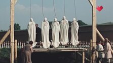 Первый дубль прошел, как по нотам, но закончился курьезом. Сцена получилась настолько грандиозной, что после команды: "Стоп! Снято!" все стали ликовать и хвалить друг друга, и о каскадерах забыли – они продолжали болтаться на виселице. Первым спохватился режиссер – Владимир Мотыль. Стали срочно сколачивать помост над огромной ямой, чтоб как-то снять каскадеров. Подробности – в программе "Кинофакты".