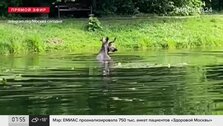 Обитатели Московского зоопарка в жаркие дни стали держаться поближе к воде. На кадрах можно увидеть детеныша капибар Кузьмы и Малой. Малыш искупался и пытается выбраться на берег. Его лапки скользят, но ему все же удается справиться с поставленной задачей. Родители зверят рядом, они тоже купаются. Пара капибар сейчас вообще не оставляет свое потомство без присмотра, поделились зоологи.