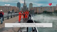 Столицу готовят ко Дню города – в порядок приводят объекты городской инфраструктуры. Так, специалисты уже очистили Бородинский мост вблизи Киевского вокзала.