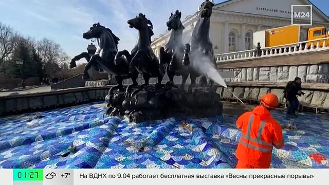 Фонтан "Гейзер" на Манежной площади начали готовить к летнему сезону
