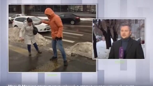 Резкое потепление принесло столице мокрый снег и сильный ветер