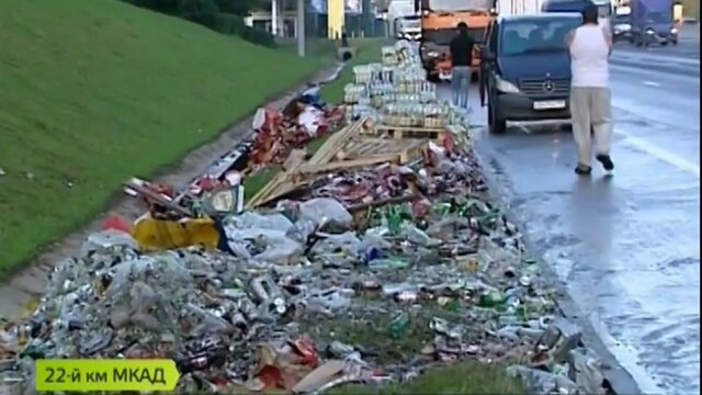 На 22-м километре МКАД перевернулся грузовик с пивом