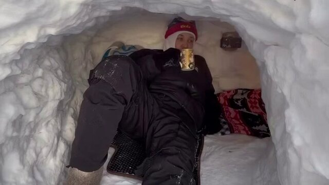 Москвич обустроил в сугробе дом с телевизором и кроватью