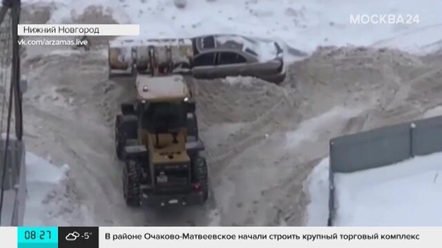 В Нижнем Новгороде тракторист завалил автомобиль снегом