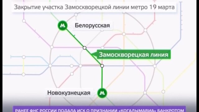 Движение поездов между "Белорусской" и "Новокузнецкой" возобновят 20 марта