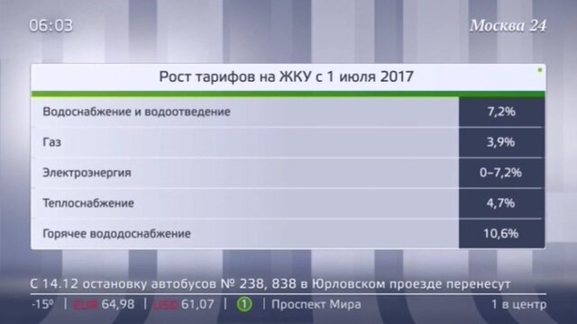 Москвичей ждет повышение тарифов на коммунальные услуги и капремонт