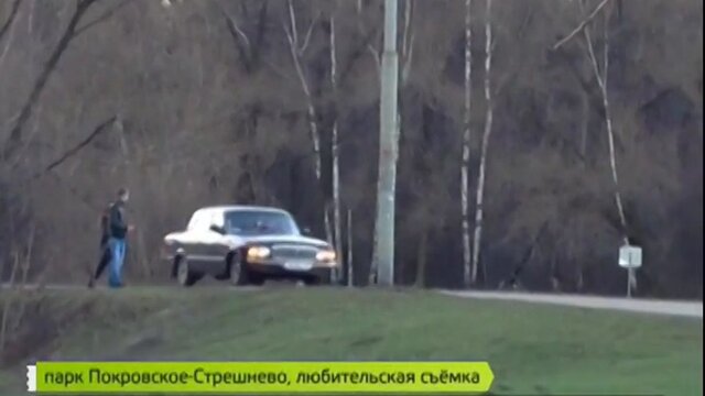 В парке "Покровское-Стрешнево" машины ездят по пешеходным дорожкам